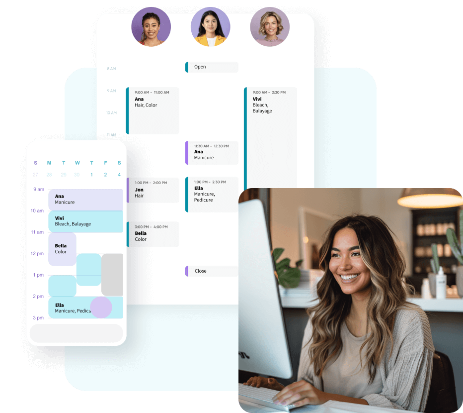 An accurate and convenient booking experience for clients and customers starts with real-time updates of staff availability. Then, it’s synced with client bookings.