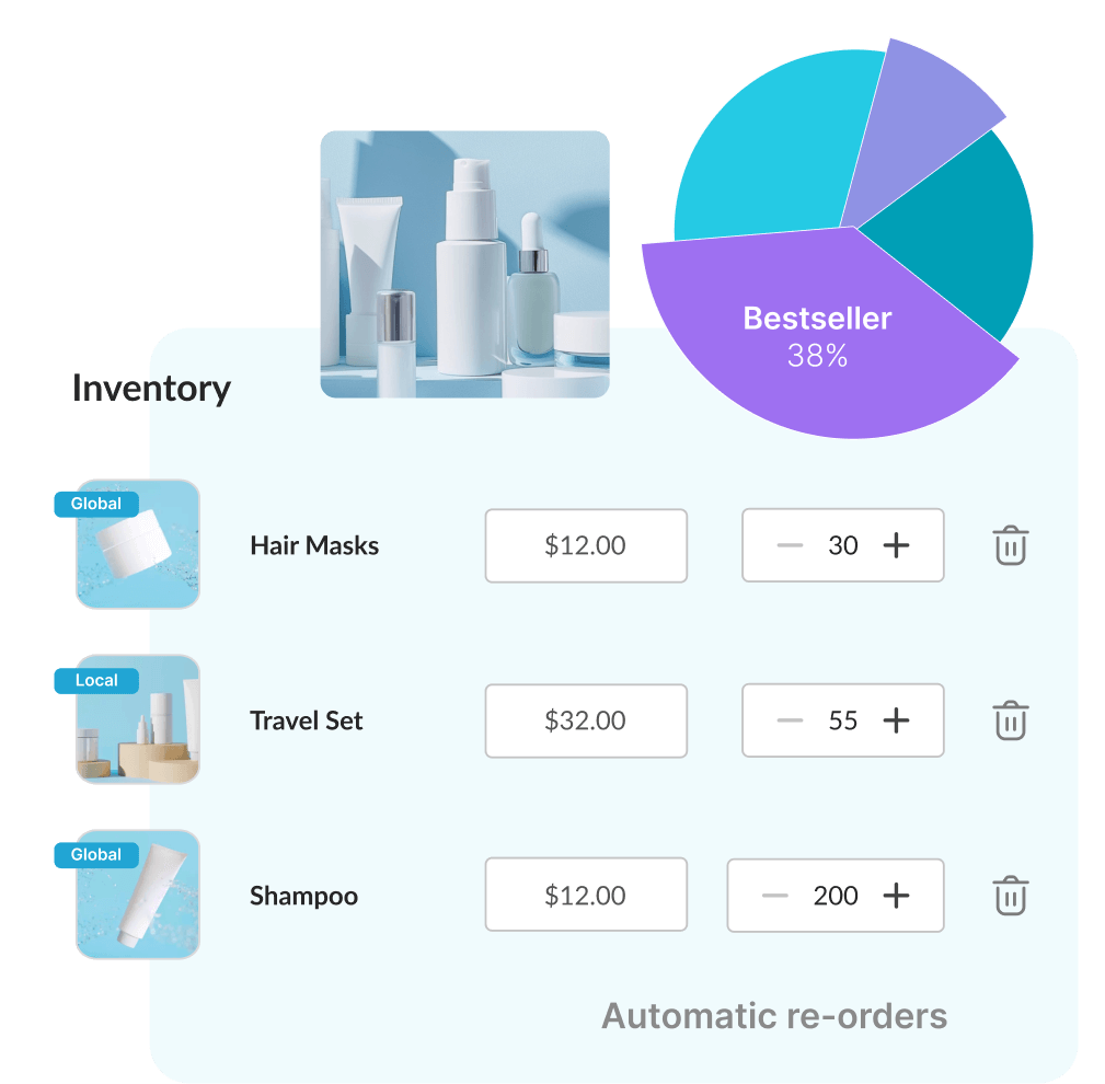 The inventory management system tracks inventory levels and automatically reorders items. It makes sure your bestsellers are never out of stock. When a company runs out of inventory, it can mean lost sales, lower productivity, or cause frustration for customers.